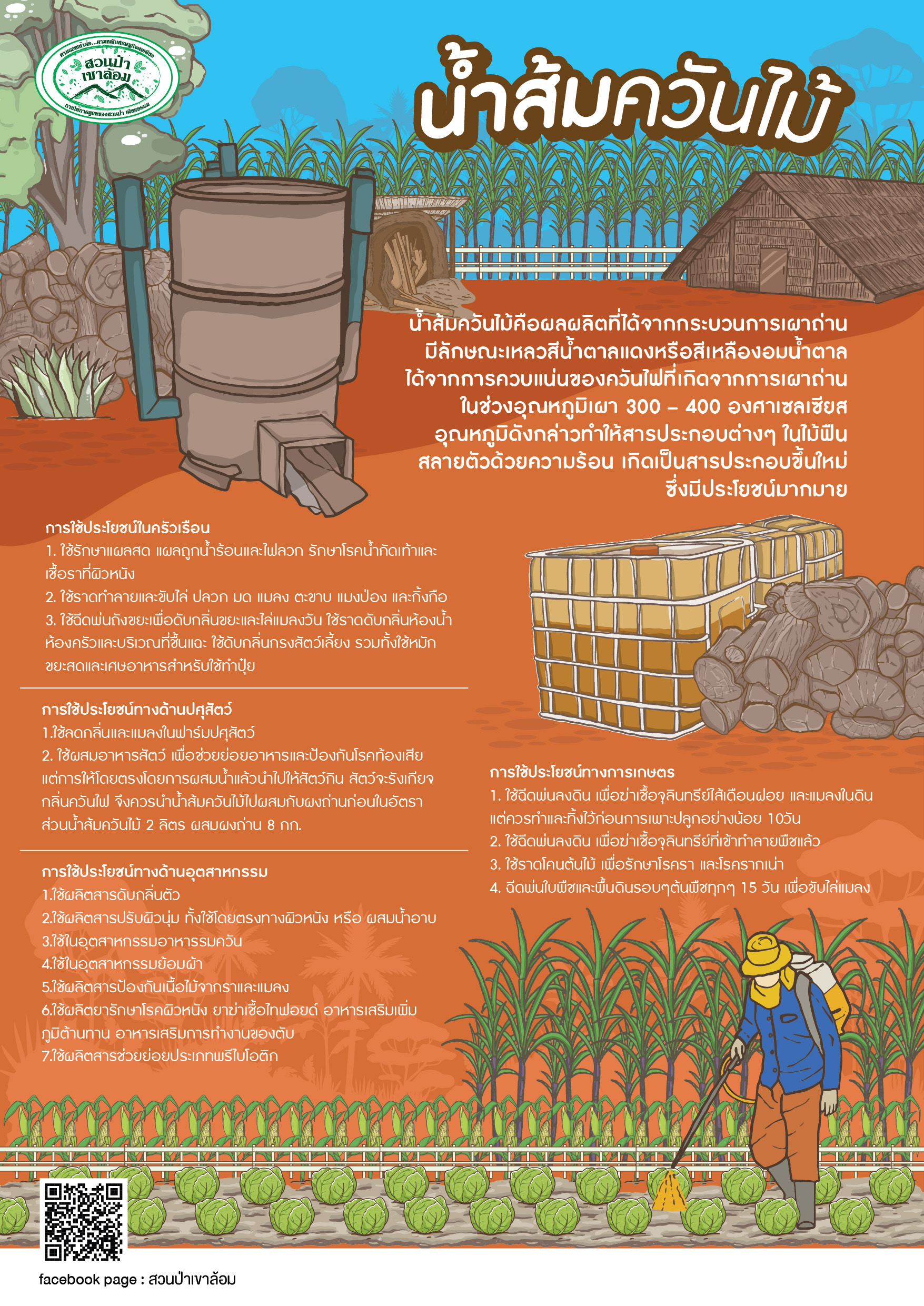 น้ำส้มควันไม้คือผลผลิตที่ได้จากกระบวนการเผาถ่าน มีลักษณะเหลวสีน้ำตาลแดงหรือสีเหลืองอมน้ำตาล ได้จากการควบแน่นของควันไฟที่เกิดจากการเผาถ่านในช่วงอุณหภูมิเผา 300 - 400 องศาเซลเซียส อุณหภูมิดังกล่าวทำให้สารประกอบต่างๆ ในไม้ฟืน สลายตัวด้วยความร้อนเกิดเป็นสารประกอบขึ้นใหม่ ซึ่งมีประโยชน์มากมาย